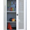 • Portes battantes perforées avec renforts verticaux toute hauteur