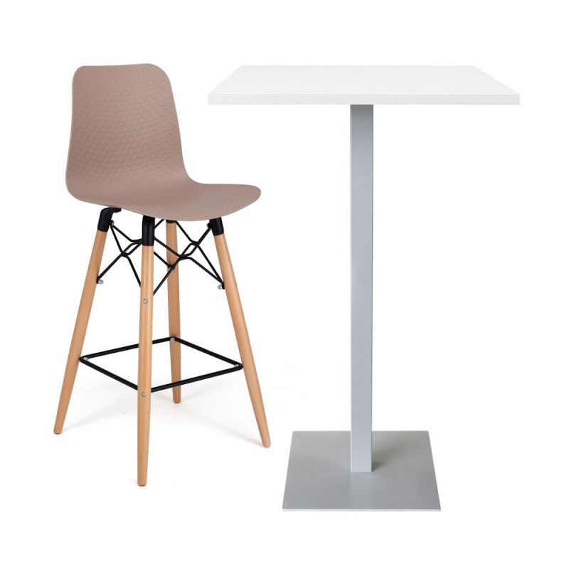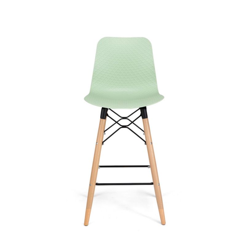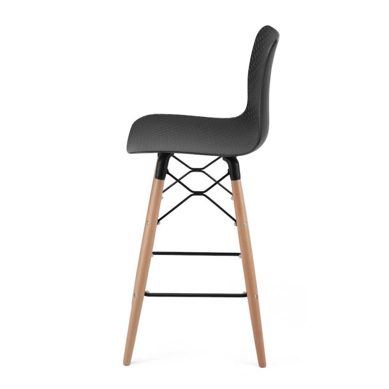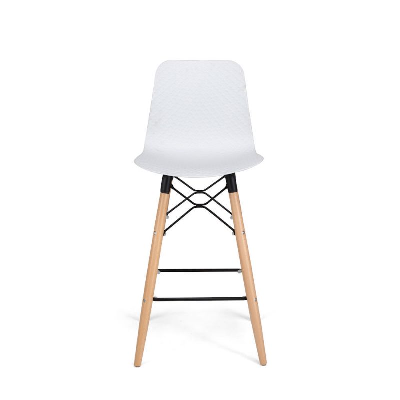 • Coque incurvée en polypropylène avec motif en losange • Repose-pieds en acier noir • 4 pieds fuselés en hêtre massif verni mat • Pieds équipés de patins de protection & anti-dérapants • Hauteur de l’assise : 690 mm • Hauteur du repose-pieds : 235 mm