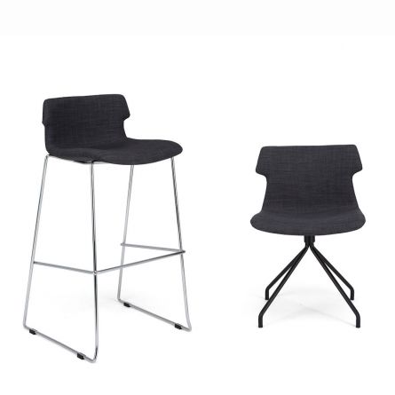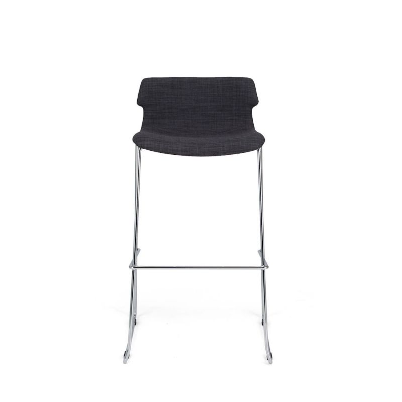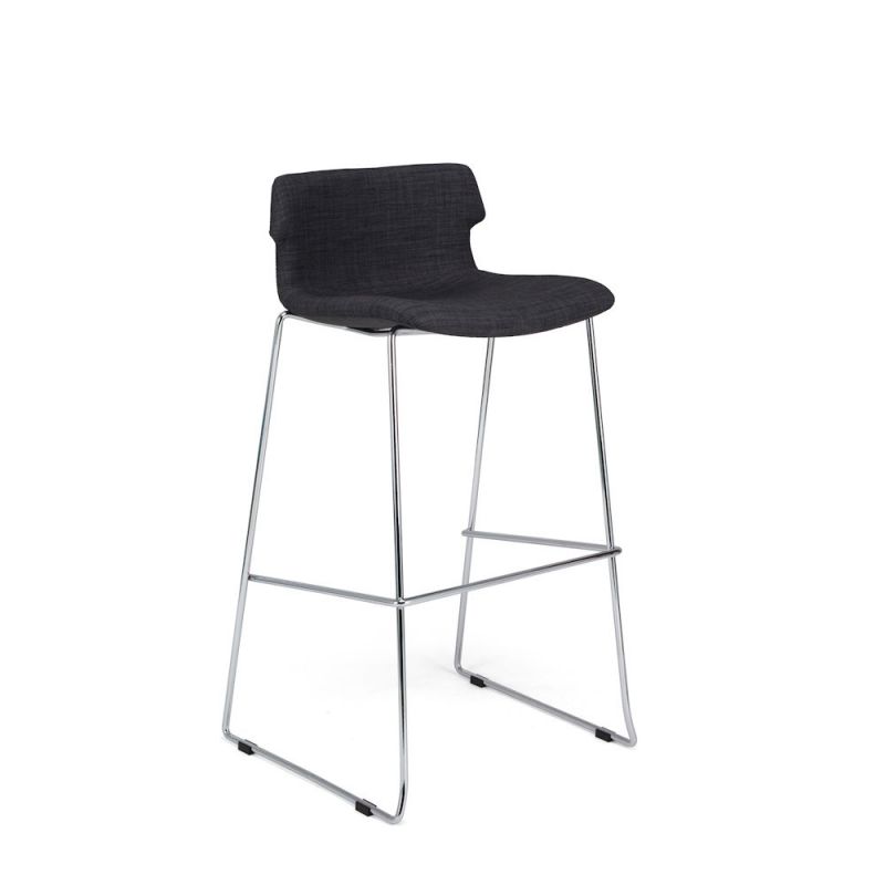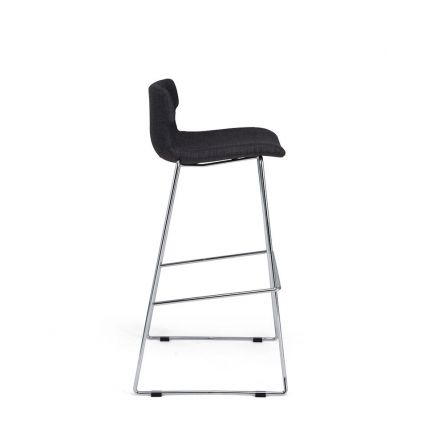 • Assise et dossier garnis de mousse • Revêtement en tissu gris anthracite • Piètement traîneau en tube d’acier chromé avec repose-pieds • Pieds équipés de patins de protection & anti-dérapants • Hauteur de l’assise : 780 mm • Hauteur du repose-pieds : 350 mm